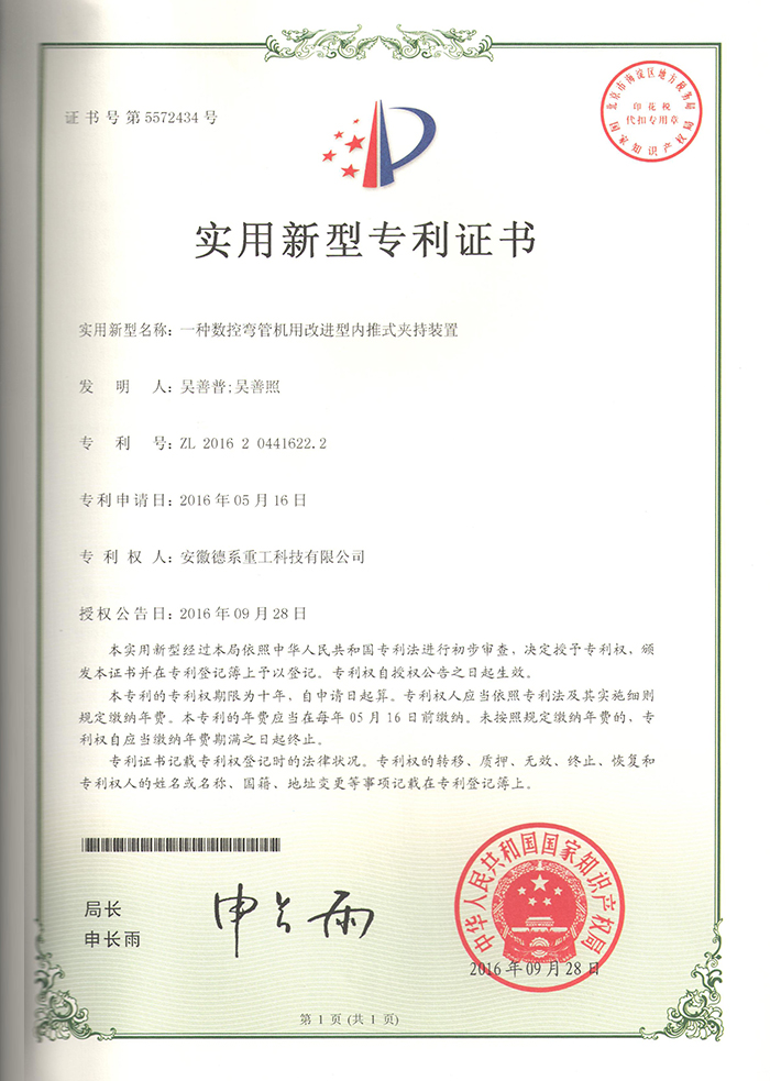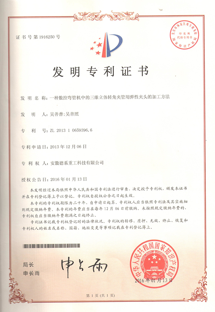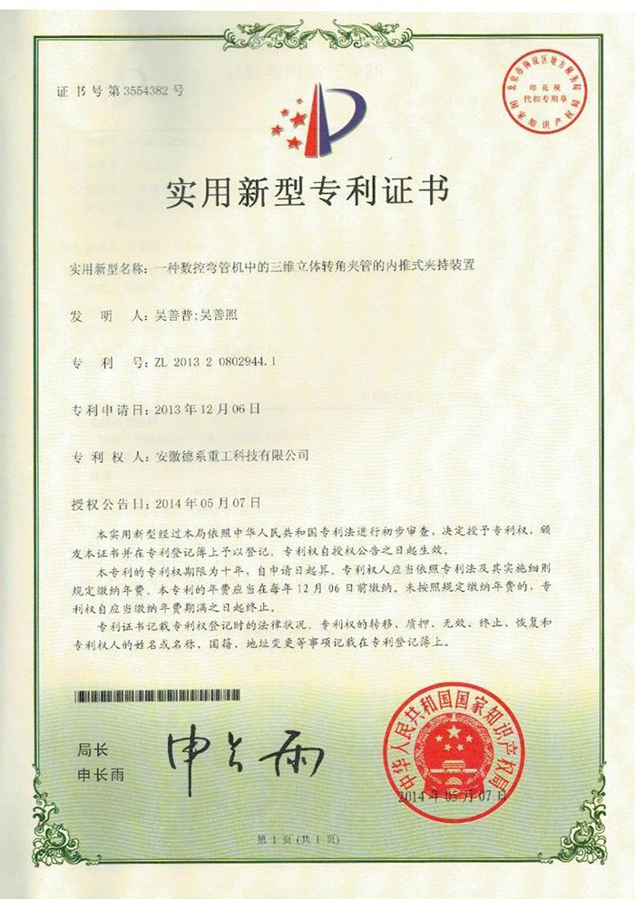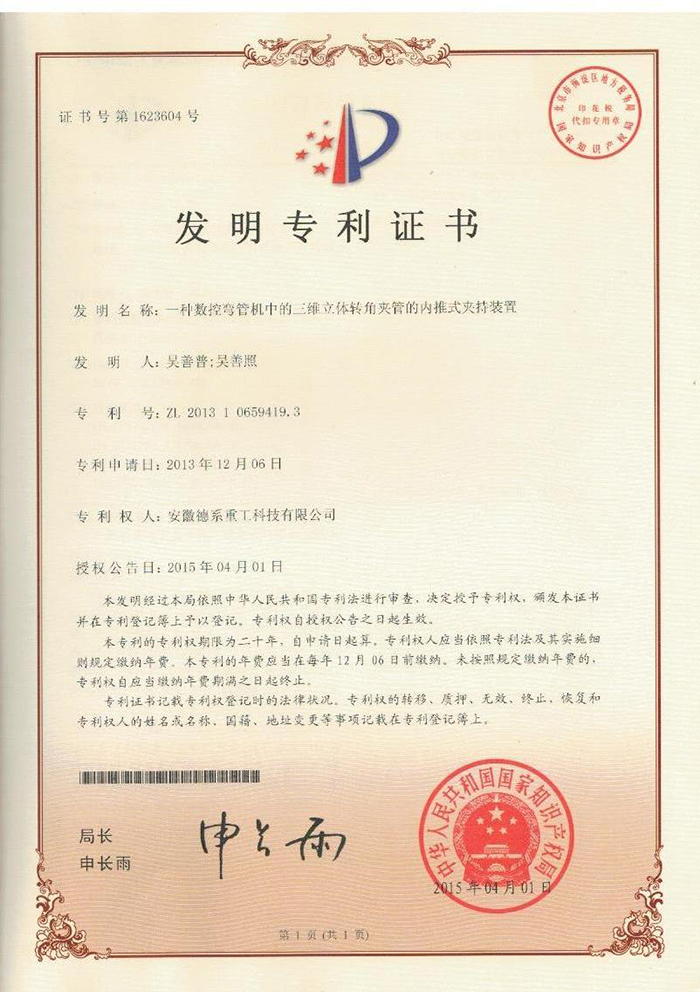三維立體轉(zhuǎn)角夾管用內(nèi)推式夾持裝置——發(fā)明專利
