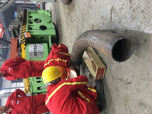 2.慢速抽芯,在彎曲極小半徑薄壁管的同時(shí)進(jìn)行緩慢抽出彎頭處的多球芯軸,具有極好的矯圓和除皺作用。