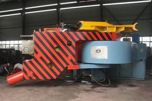 ● 夾緊系統(tǒng)采用下沉式四連桿升降增力機(jī)構(gòu),成品后,夾頭下沉至轉(zhuǎn)臂內(nèi),更便于裝卸及空間彎管(成品在重力下自然下落,卸管相當(dāng)方)。