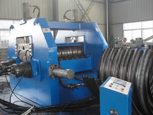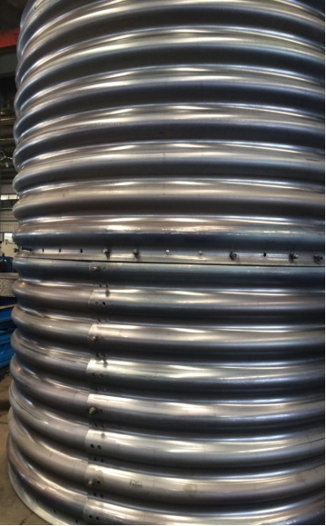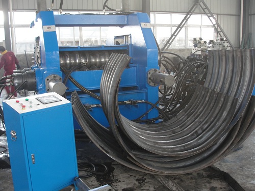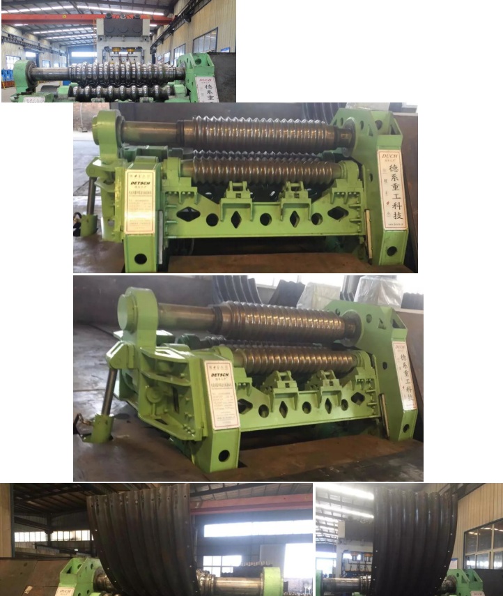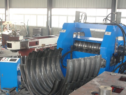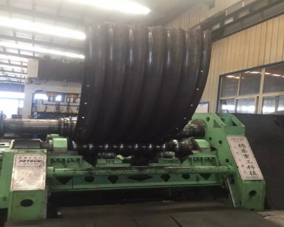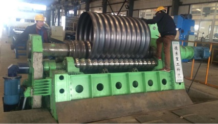 (5)考慮到卷制的應(yīng)力無法消除導(dǎo)致卷制后的成品兩端收縮,我公司在反復(fù)試驗過程中得到很多寶貴經(jīng)驗,其中一項是在波紋板卷制成品之前給予一定量的反向變形,成品后自然矯正。