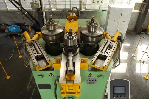 07.回轉(zhuǎn)電動和液壓位移驅(qū)動:一次上料完成,各種型材(角鋼、槽鋼、H型鋼、圓鋼等)端部預(yù)彎和回轉(zhuǎn)彎曲成型,可將各種型材彎曲成所需要的圓形、弧形、螺旋形、橢圓形等預(yù)定曲率工件。