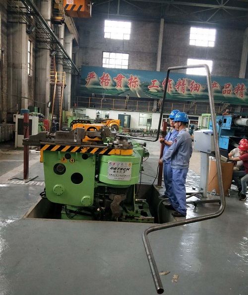 3、彎曲結(jié)束時,主模(a)旋轉(zhuǎn)停止時的角度就是所需要的彎曲角度。使用多球芯軸(f)和防皺模(g)保證管子(或型材)的橢圓度和內(nèi)壁不起皺。