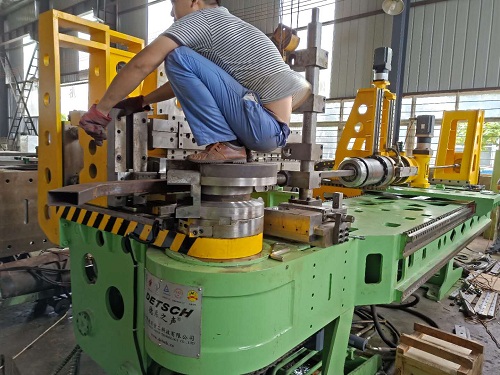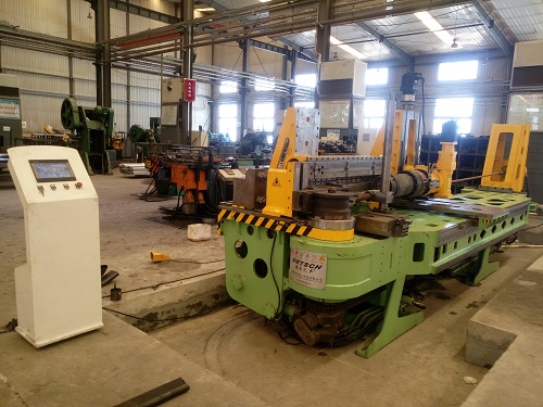 3.尾端活塞桿行程調節(jié)器具有調節(jié)芯棒插入管件的位置的作用,達到最佳彎管效果。