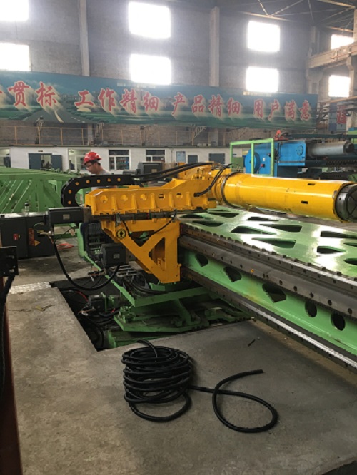 八、輔推油缸安裝在輔推架內(nèi)(頂鐓模塊的頂鐓油缸和頂鐓架為整體鍛造40Cr并調(diào)質(zhì)),輔推(頂鐓)油缸同等行程下有效減少輔推(頂鐓)機(jī)構(gòu)長度,避免了彎曲管件尾部因輔推(頂鐓)機(jī)構(gòu)長度帶來的直線段浪費(fèi)。(注:頂鐓功能模塊為特殊附件,需另訂)九、抓料、轉(zhuǎn)角、送料小車安裝在獨(dú)創(chuàng)的三道軌床身上(數(shù)控型,NC型無此項(xiàng)):